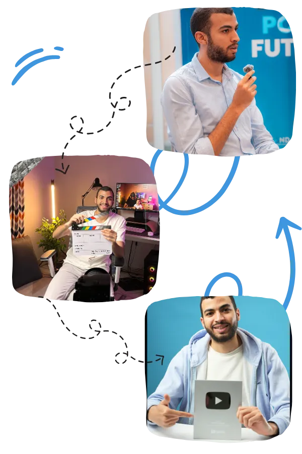 بدأت رحلتي لما تركت الطب لبناء مسار مهني عبر الإنترنت. من خلال العمل الحر، اكتشفت قوة المحتوى والأنظمة اللي كانت بتساعد العملاء معايا، وساعدت العملاء على نمو قنواتهم على يوتيوب، وبناء استراتيجيات وسائل التواصل، وتحويل المحتوى إلى دخل.